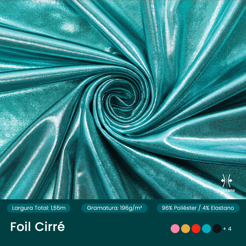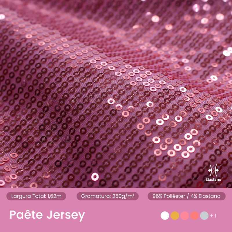 Malha com boa elasticidade e acabamento metalizado que cria efeito visual de alto brilho, com toque macio e sem transparência. Indicado para bodies, tops e figurinos que pedem impacto visual e conforto.