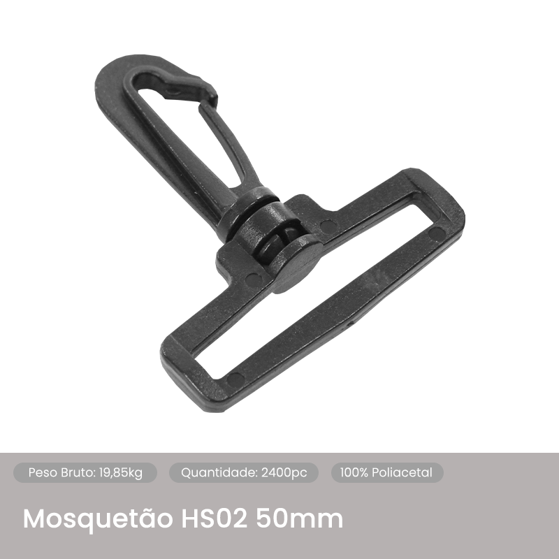 Possui formato de gancho, possui um segmento móvel chamado gatilho, feito em metal niquelado. A versão em plástico oferece resistência e é ideal para unir diferentes componentes com praticidade e segurança.