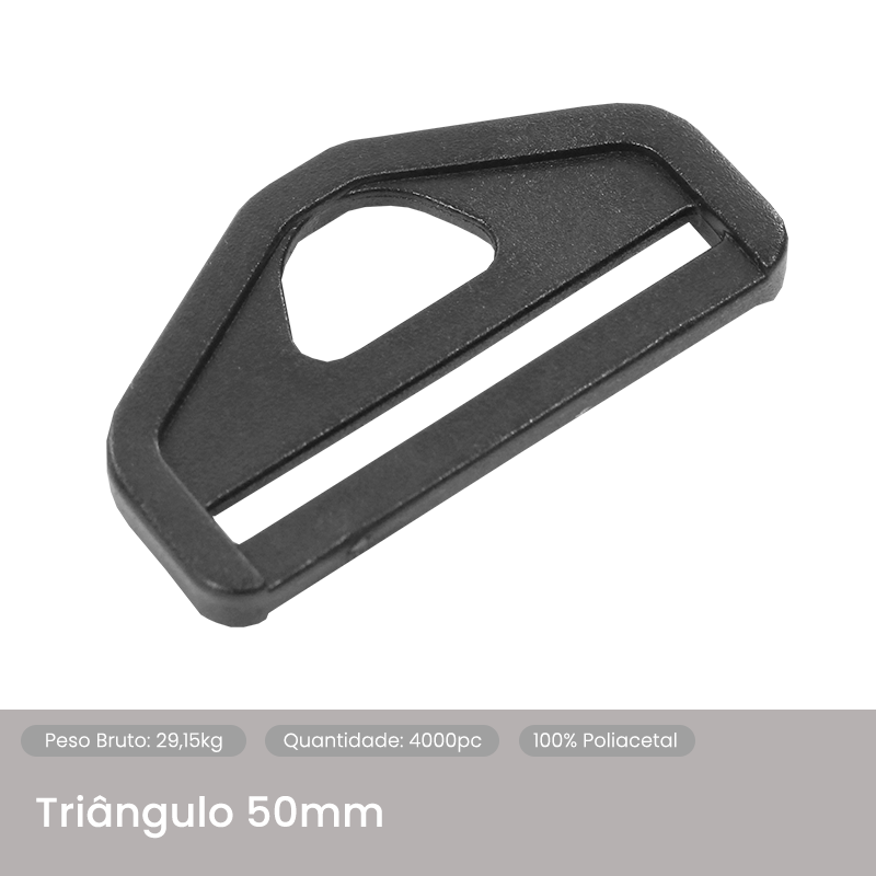 Também conhecido como meia argola triangular, é um acessório de conexão muito utilizado no acabamento de alças. Além de permitir ajustes de altura ou comprimento, oferece praticidade e bom acabamento, com alta resistência mecânica e química.
